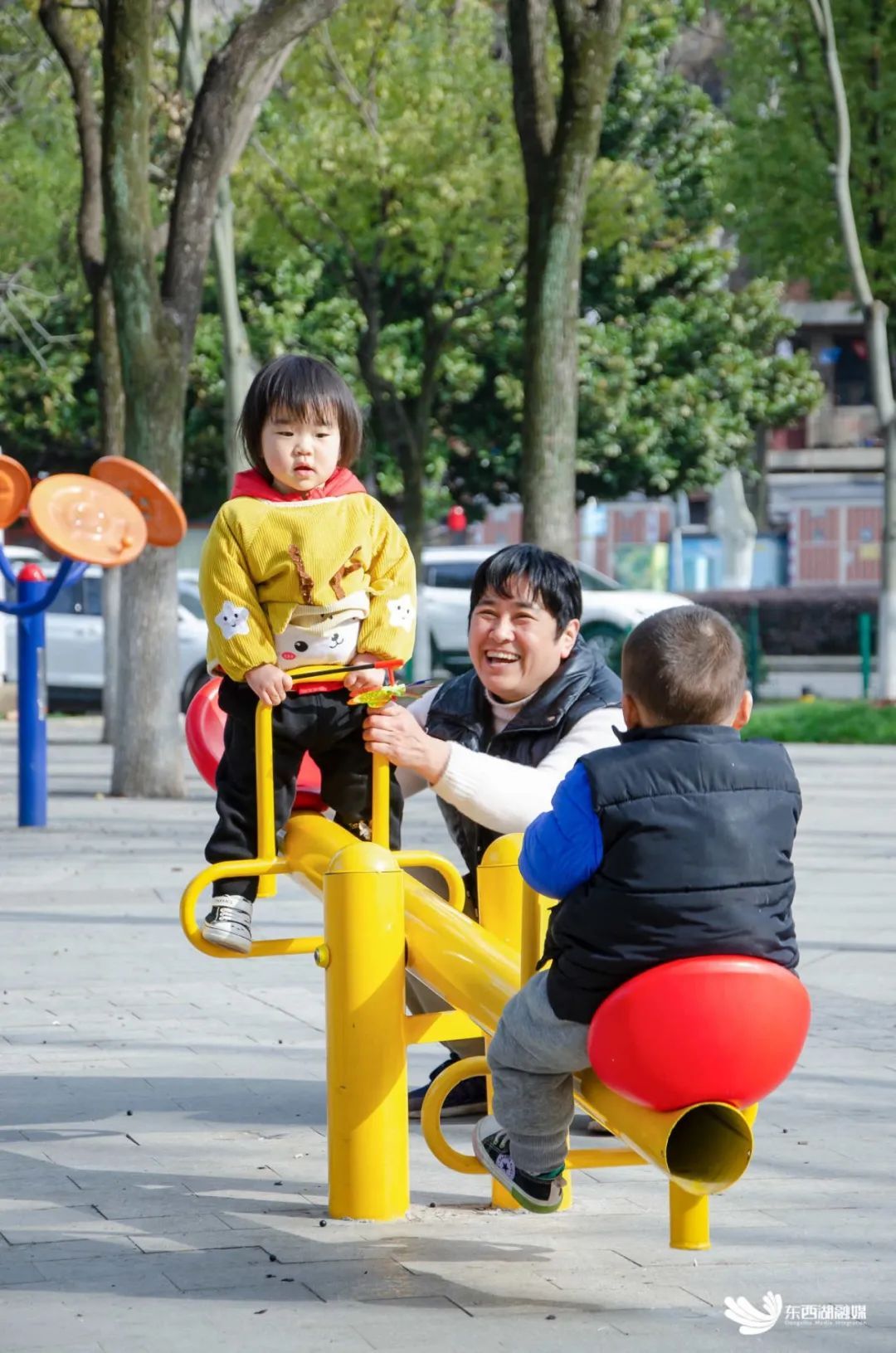 针对辖区老年人较多、游园椅子偏少的状况,改造后的游园增加坐凳17个,让居民在运动锻炼的间隙,“坐”下来享受美丽宜人的风景。另外,游园新增摇摇乐、传声筒、跷跷板等设施,变身年轻家庭喜欢的亲子乐园。