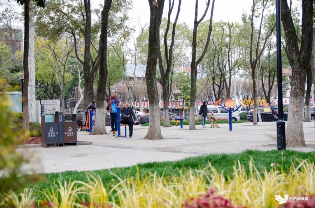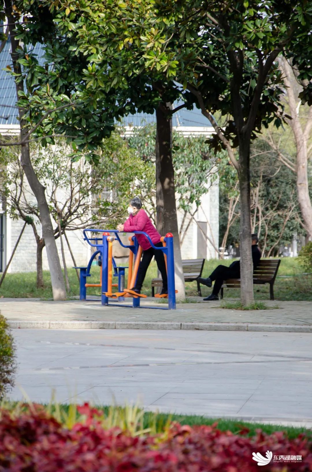 赏心悦目的绿化带,焕然一新的健身器材……三月的吴家山街六顺路游园里,老年市民趁晴好天气遛弯散步,享受春光。