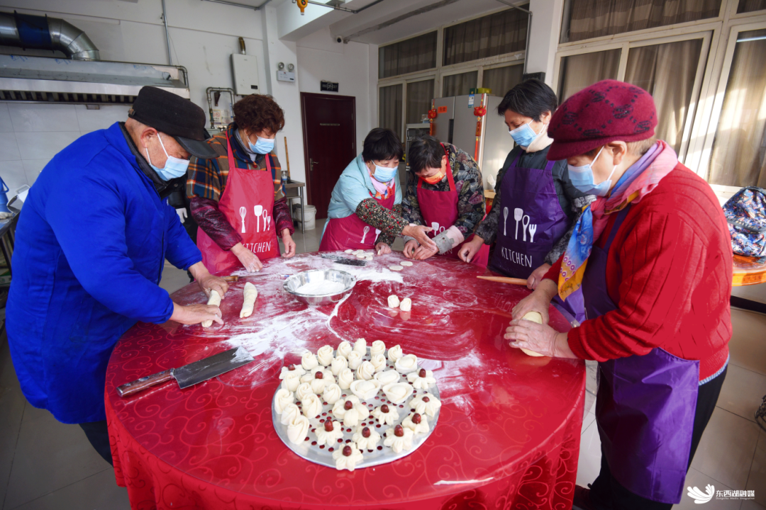 春节前,在长青街合兴里社区党群服务中心的小食堂里,六位来自五湖四海的老人已经开始了忙碌。和面、醒面、铺面、切剂子……几个人合作默契,一气呵成。没多久,小食堂里就飘满了小麦的香气。“马上过年了,我们新研究了几个喜庆的花样,想做一些花糕送给街坊们吃。”韩新坡爹爹介绍道。