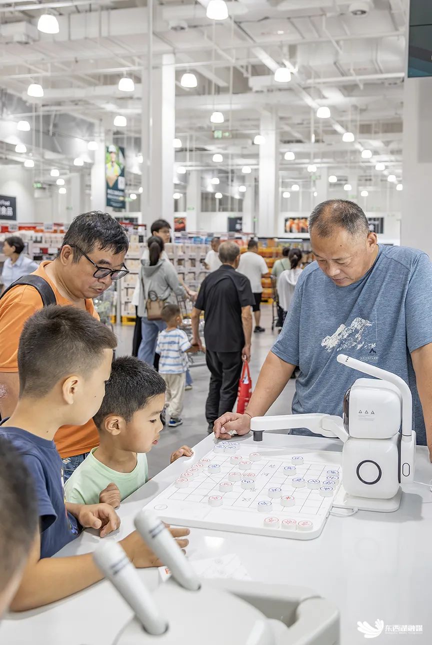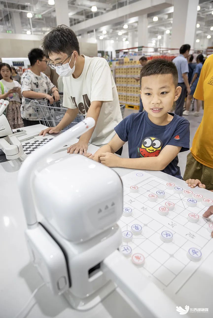 在WS江豚会员店的科技体验区,一款由东西湖本土企业盈乾家智能科技研发的“元萝卜”智能下棋机器人吸引了众多顾客的目光。