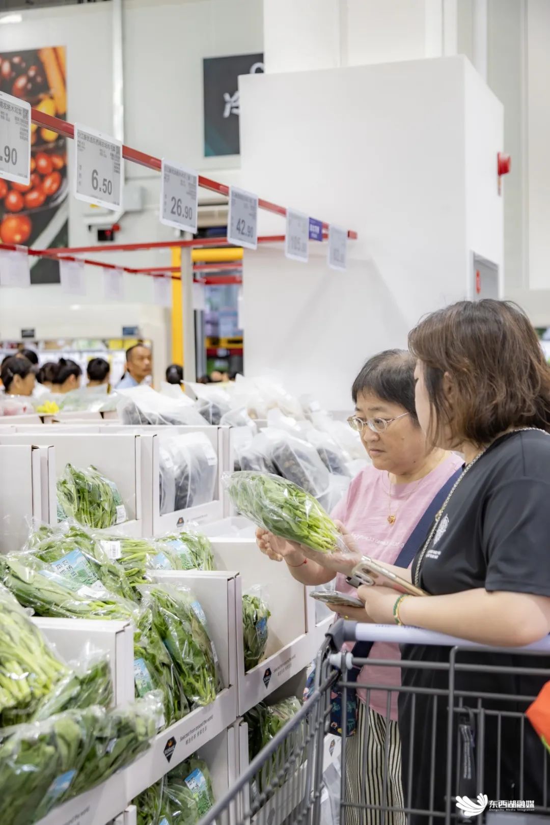 据悉,会员店已与区内多家知名企业建立深度合作:与上市企业中饮巴比合作,实现面点产品当日直达;与周黑鸭共建专属生产线,确保卤制品新鲜度;依托柏泉蔬菜基地,现采蔬菜12小时内从田间到货架。