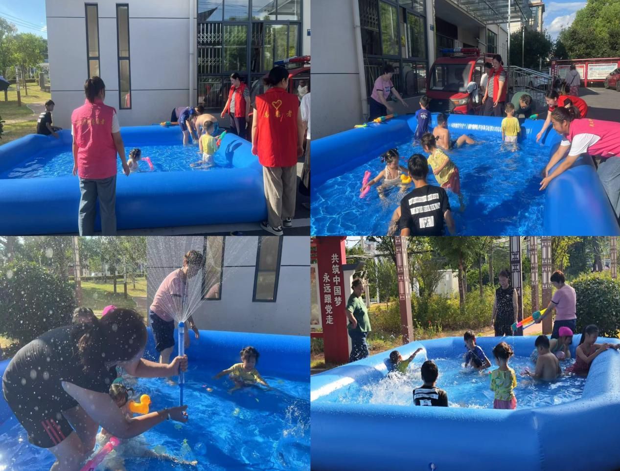 为了让孩子们既能尽情享受亲水乐趣,又能远离野外水域的危险,创新推出“堵疏结合”的暖心模式:一方面在危险水域全面布设警示标识“四个一”应急救援物资,从源头筑牢“防护墙”;另一方面使用街道提供的充气式游泳池,为孩子们打造“移动戏水乐园”,用安全可控的场地满足孩子们的亲水需求,从根本上降低野外游泳的风险。