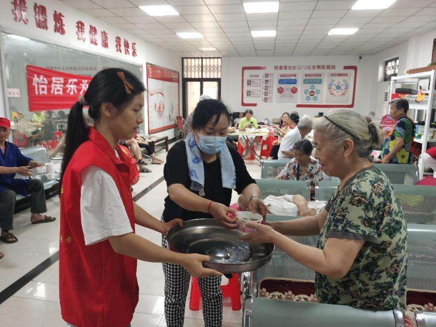 近期持续高温天气,为切实做好社区居民的防暑降温工作,8月5日上午,恒春里社区联合怡居乐健康管理有限公司在社区纳凉室开展了“爱心绿豆汤 夏日送清凉”活动,为辖区居民送上一碗解暑绿豆汤,将清凉和关爱送到居民的心坎上。