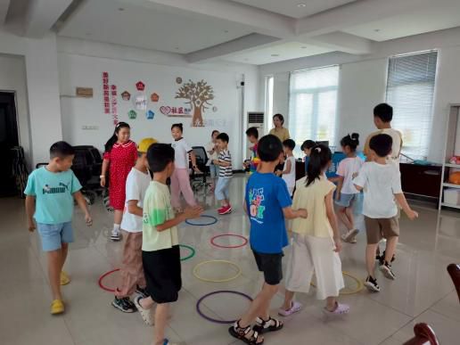 活动开场,“敲鼓嗨翻天”游戏瞬间点燃孩子们的热情。孩子们围在四周,紧盯鼓手节奏,鼓声停歇即争抢塑料圈,欢笑声、助威声此起彼伏。这一趣味互动,快速活跃课堂氛围。
