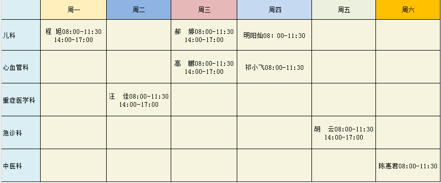 专家坐诊丨8月11日-8月17日 专家坐诊安排