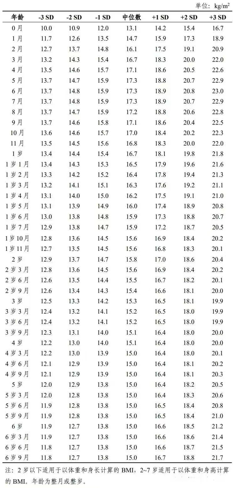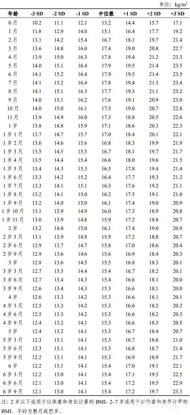 7岁以下儿童以年龄别BMI的标准差作为评价方法