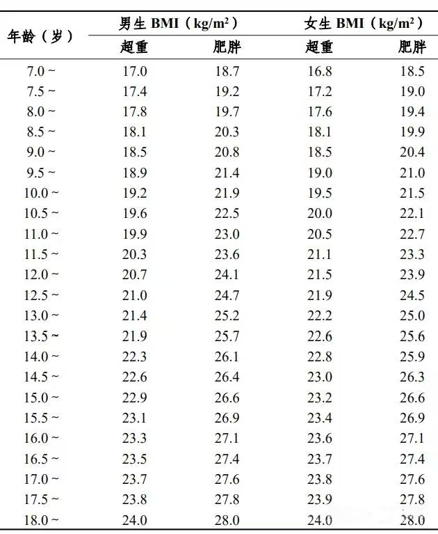 7-18岁儿童青少年性别年龄别BMI作为筛查超重肥胖标准