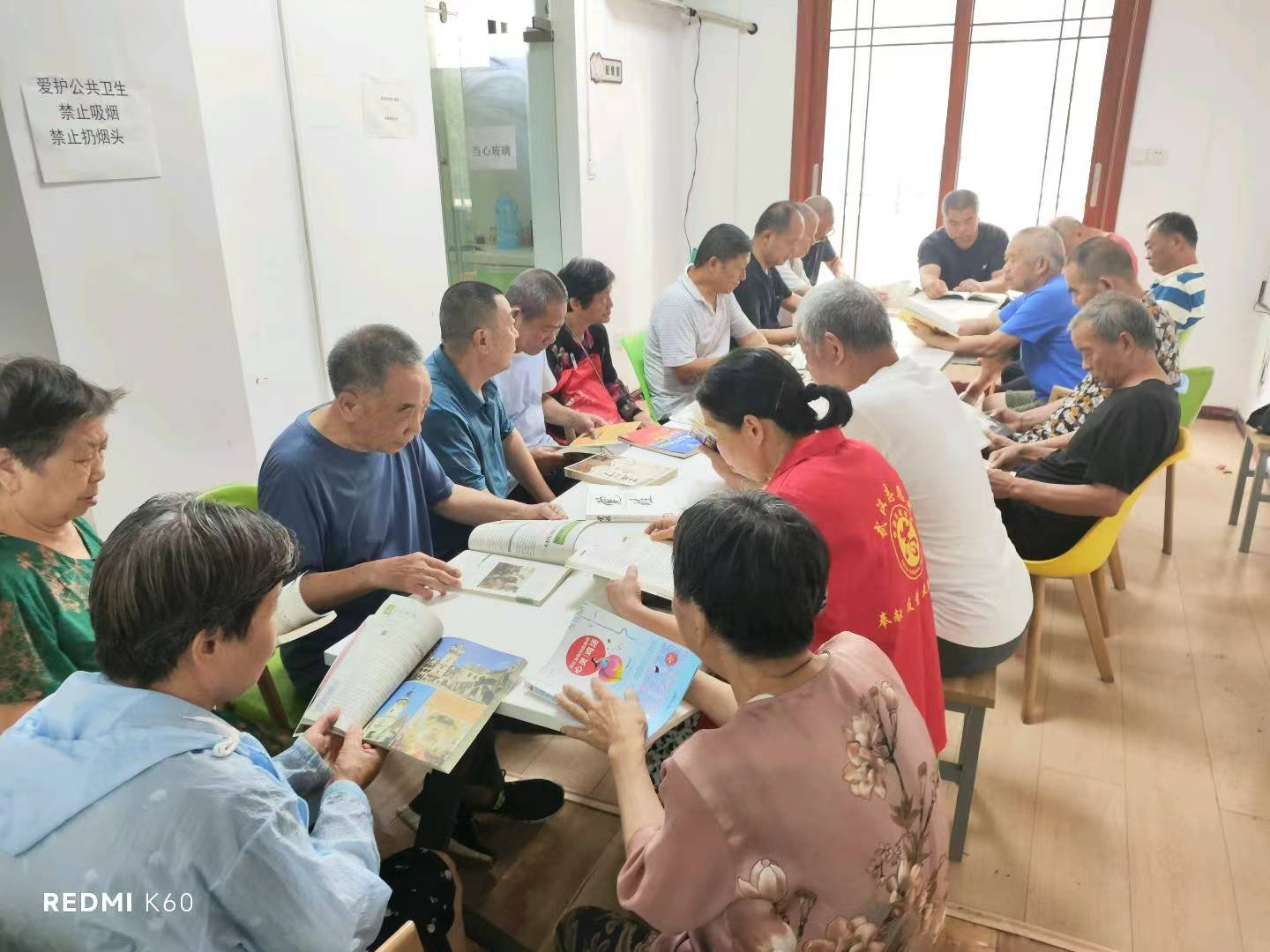 书海徜徉,乐享阅读时光,活动室内窗明几净,凉风习习。社区工作人员提前布置了温馨舒适的阅读角,精心挑选了历史传记、养生保健、文学小说、时事报刊等多种适老读物。30余位社区老人齐聚一堂,或安静阅读,沉浸于文字的魅力;或三五成群,围绕书中内容低声交流心得感悟。张大爷捧着心仪的《老年健康指南》看得入神,不时点头;李阿姨则兴奋地与老友分享刚读到的精彩历史故事,现场气氛宁静而融洽,充满了浓厚的学习与交流氛围。