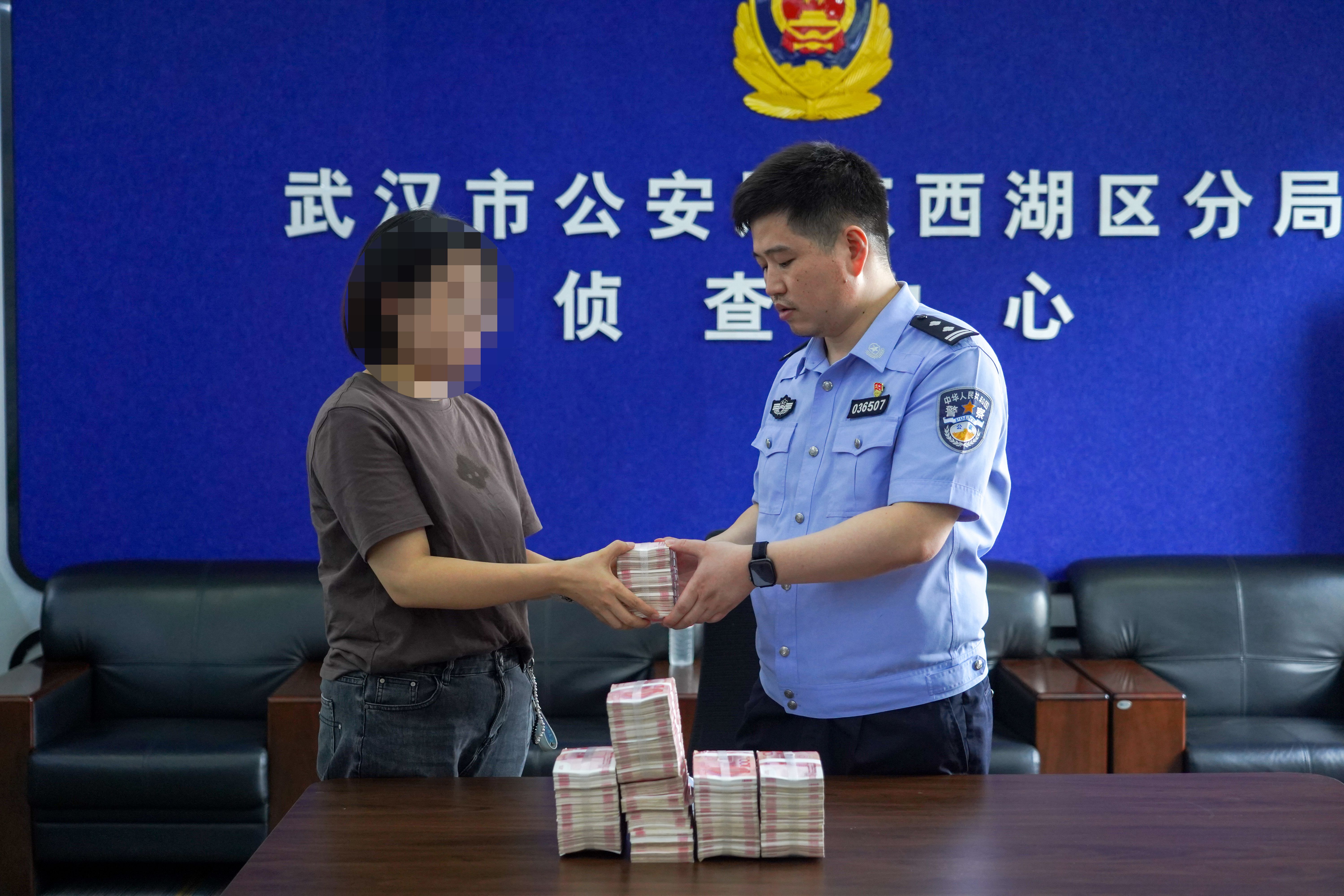 “这是您的现金款,现在原封不动归还!”8月5日下午,在武汉市公安局东西湖区分局刑侦大队侦查中心内,民警肖开阳现场将涉诈款57.1万元现金发还给受害人刘女士(化名)。回忆起刚刚的惊险一幕,如梦初醒的刘女士连连表示后怕不已。