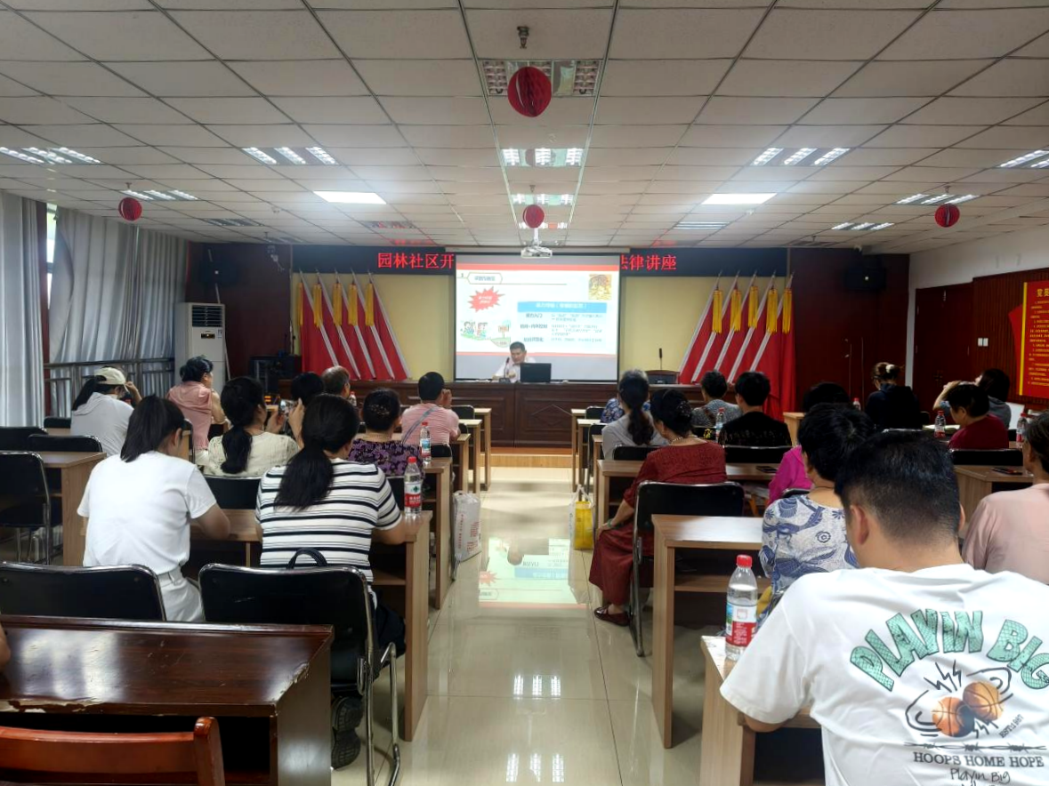 8月21日,园林社区邀请挂点律师陈锟担任主讲人作专题讲座,他用通俗易懂的语言,深入浅出地介绍了《中华人民共和国反有组织犯罪法》的出台背景、立法目的和关键条款,并结合实际案例,以案释法,详细阐述了有组织犯罪的定义、类型以及黑恶势力的基本特征和常见作案手法等。