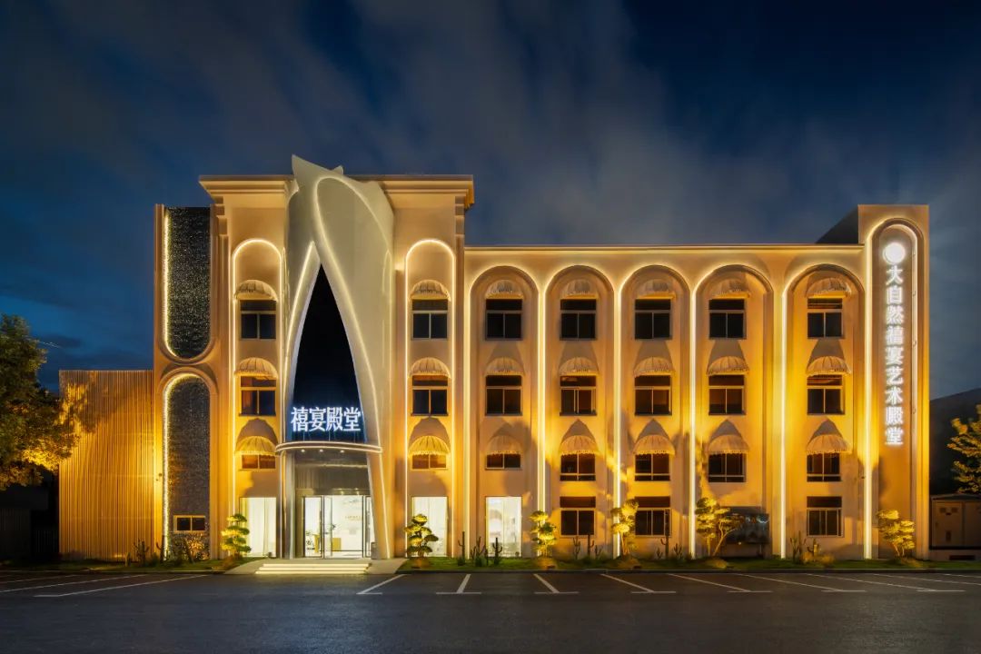 纯白简约的外观设计不失优雅,大自然禧宴艺术殿堂的建筑外观给人的第一眼是惊艳。