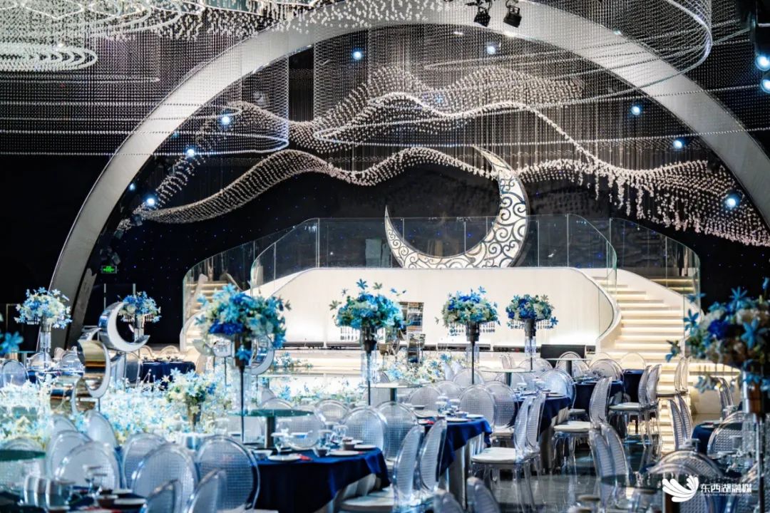海洋厅:深蓝主题打造沉浸式海洋体验,让婚礼如同徜徉于碧波之中。