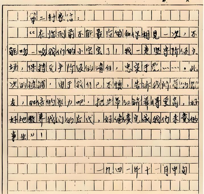 两个月后,何功伟的妻子,收到他从监狱里发出的第三封信:“……此次的被捕,由于我自己不慎。告诉我所有的朋友们,加倍的努力吧!把革命红旗举得更高,好好地教养我们的后代,好继续完成我们未竟的事业”!字字泣血,是丈夫说不出口的温柔;句句铿锵,是战士永不褪色的誓言。这哪里是诀别?分明是何功伟用生命在书写:一个共产党员最炽热的告白,一个革命志士最壮烈的凯歌,一个中华儿女最深沉的呼唤!