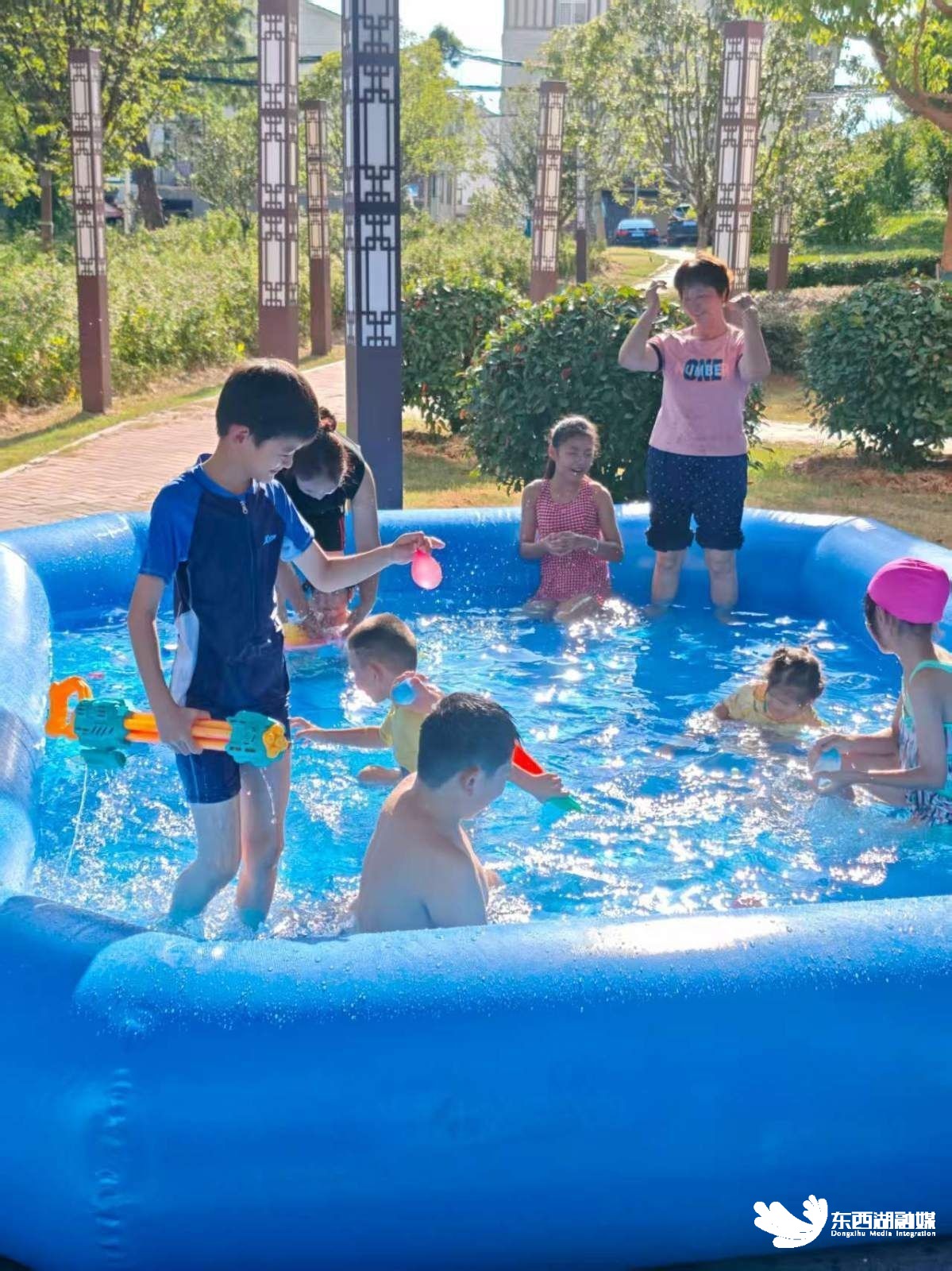 柏泉街统一为所辖8个社区配备了安全卫生的充气游泳池。(通讯员供图)