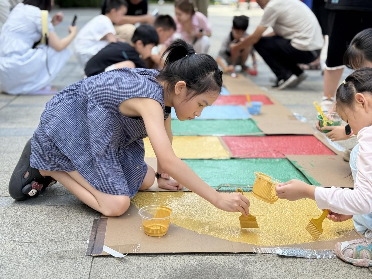 “沿着我画的跳房子格子走,再抬头看看彩色指引牌,去儿童友好空间再也不会迷路啦!”8月23日上午,在将军路街刘家墩社区愿景城小区“邻聚里”连心驿站,10组亲子家庭化身为“小小安全出行设计师”,用童心和画笔为社区增添了一条充满温度的“安全彩虹路”。