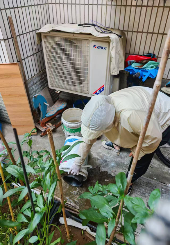 全域覆盖重点消杀:在街道办事处主要领导的带领下,各社区集中力量对辖区排水沟渠、垃圾投放点等重点区域展开地毯式排查整治,彻底清除积水容器和卫生死角。街道聘请专业消杀公司对15个社区开展消杀工作,重点处理下水道、绿化带根部、灌木丛底层、垃圾中转站、垃圾桶周边、楼道转角、地下室阴暗角落等蚊虫滋生区域,从源头阻断蚊虫繁殖环境,本周六累计喷洒药剂面积超42万平方米。