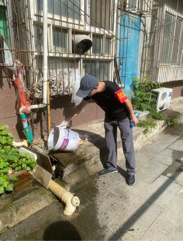 街道各科室部门联动,对辖区内背街小巷、老旧小区、建筑工地等区域的建筑垃圾、生活垃圾和杂物进行清理,现场督促整改卫生死角和积水隐患。大约131名机关干部包片驻点社区,定岗定责,深度参与包片小区的宣传发动、环境巡查、消杀监督,有效补充基层力量,确保责任压实。