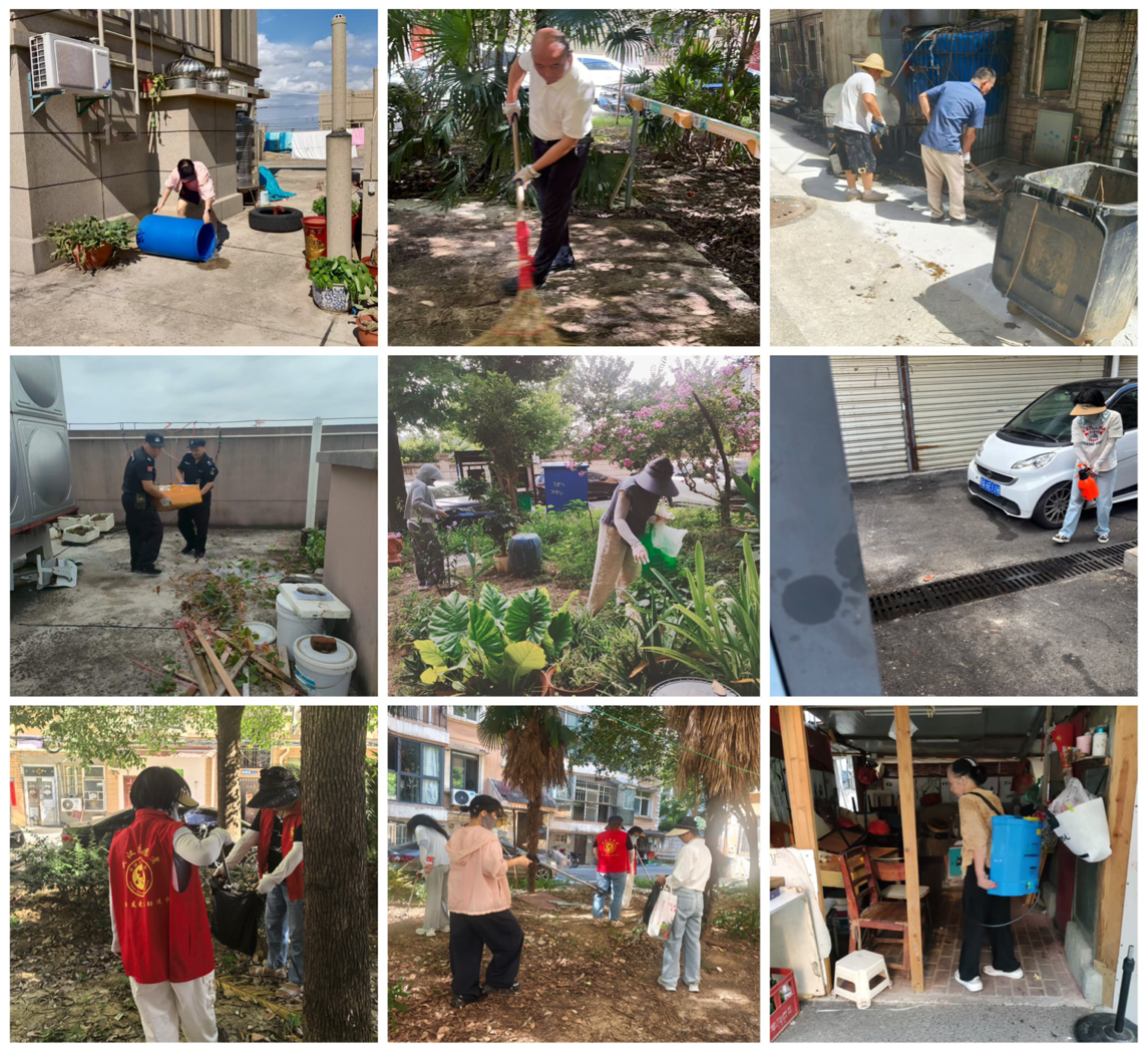 全民动员清源净底:深入开展爱国卫生运动,今日街道组织社区工作者、下沉干部、物业等人员约280余人,聚焦房前屋后、楼顶平台、楼道角落等易被忽视区域,地毯式清理各类积水容器320余处,对公共场所的花盆托盘、水缸、水桶、废弃轮胎等容易积水的容器进行全面清理,清运枯枝落叶、堆放杂物各类垃圾杂物6.32余吨,从源头遏制蚊虫滋生。