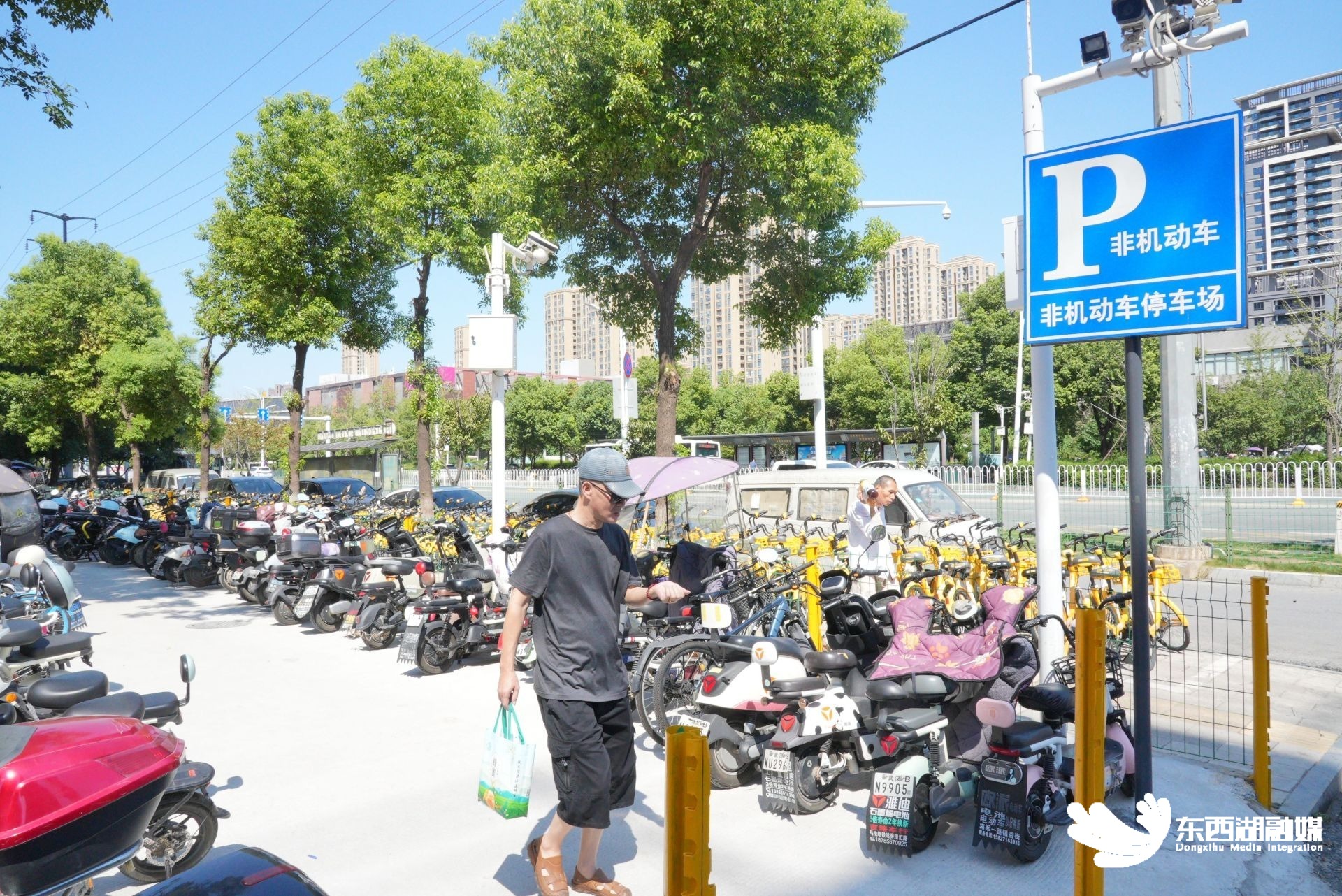 金银潭侧路上新建成的非机动车停车场。