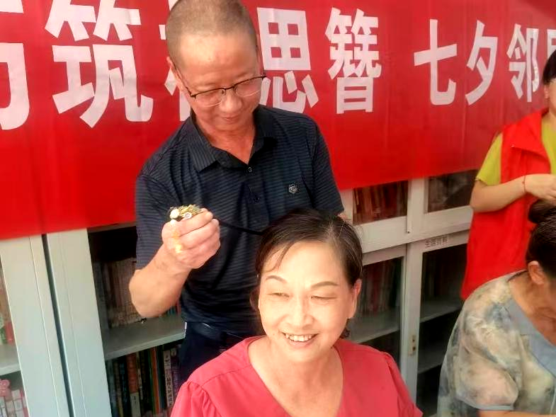 经过一番精心制作,一件件造型别致的发簪逐一完成,几位男士小心翼翼地将亲手制作的发簪插在与自己共度半生的妻子发髻上,妻子们泛红的眼眶里满是藏不住的感动。不少居民表示,这是他们第一次亲手制作发簪,不仅感受到了传统手工艺的独特魅力,更在制作过程中沉浸式体会到了七夕节的浪漫氛围,还增进了与邻里之间的情谊。