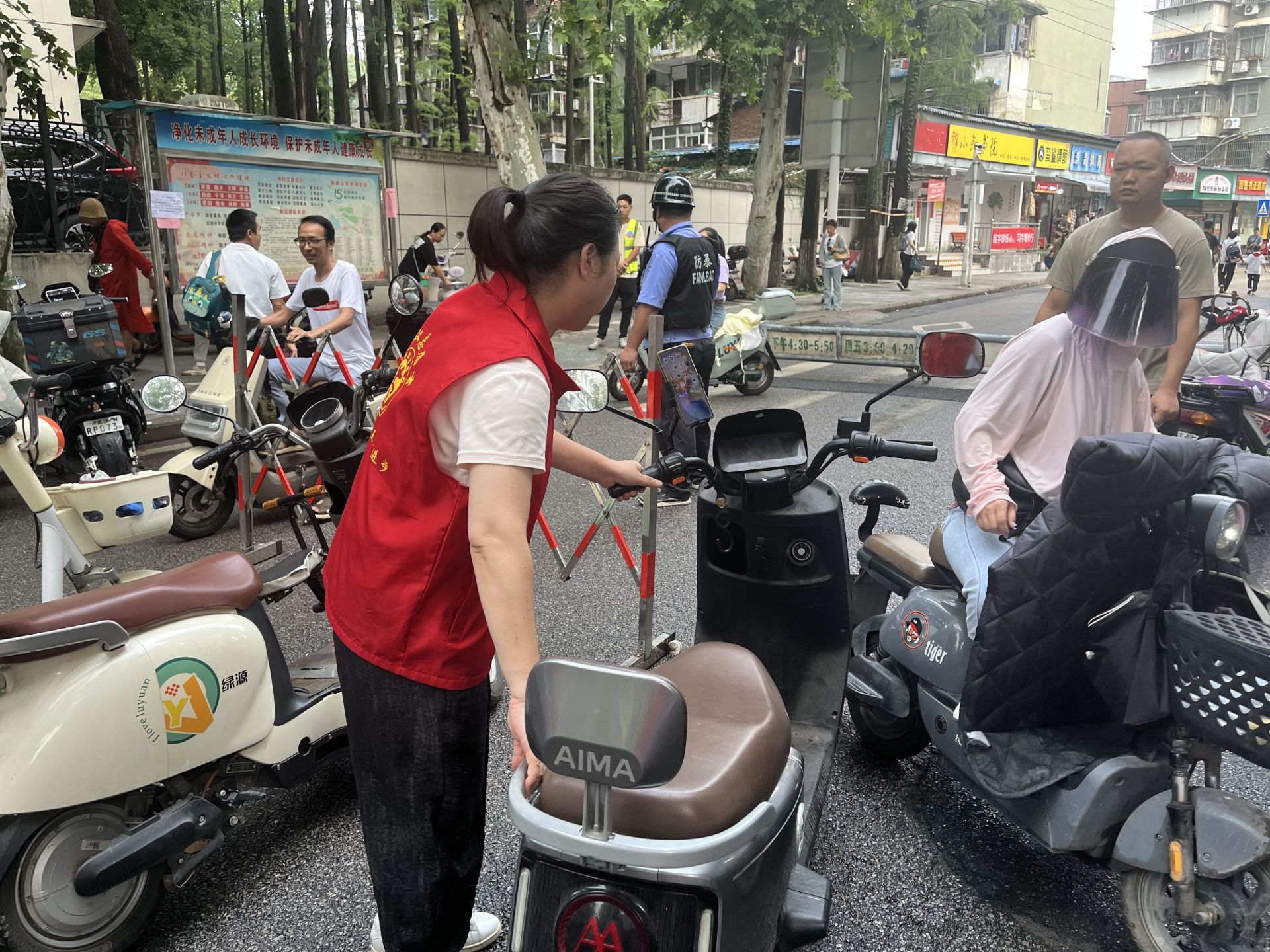 活动期间,志愿者们身着统一志愿马甲,在学校门口及周边路口 “上岗”。负责交通疏导的志愿者们,站在学校门口两侧的斑马线旁,一边微笑着对送学家长说 “麻烦您即停即走,避免后面堵车哦”,一边快速引导车辆有序停靠、驶离;负责学生引导的志愿者则重点关注低年级小朋友,看到有孩子背着沉重书包、手里还拎着文具袋时,会主动上前接过文具袋,牵着孩子的手慢慢走过斑马线,还不忘叮嘱 “过马路要左右看,跟着叔叔阿姨走最安全”;针对校门口因家长聚集可能出现的拥挤问题,志愿者们会分成 2 组,沿着校门两侧的人行道有序疏导,提醒家长 “请大家在护栏外等候,给孩子们留出入校通道”,细致地引导让原本热闹的校门口始终保持着井然秩序。同时,对个别未戴头盔骑电动车接送孩子的家长,社区工作人员耐心劝说其佩戴安全头盔,讲解了不佩戴头盔可能带来的严重后果,普及了交通安全法规,引导家长提高安全意识,从自身做起,文明、安全出行。
