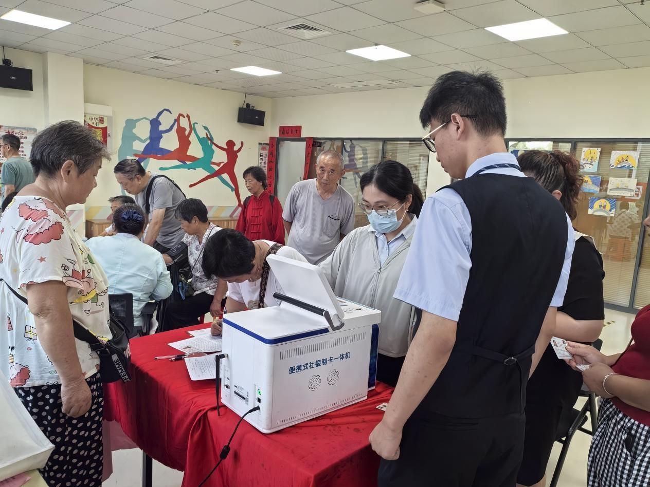 与此同时,汉口银行金银潭支行专程送服务上门,设置临时服务点位,手把手帮助社区老年人完成医保卡更换操作。从信息核对到流程办理,工作人员全程耐心指导,有效解决了老年群体操作不便、往返奔波的难题,让居民在享受健康服务的同时,感受到便捷的金融关怀。