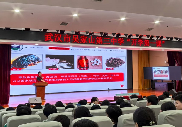 金秋九月,校园里洋溢着新学期的朝气。为给青春筑起一道禁毒防火墙,2025年9月5日下午,吴家山街社区戒毒康复中心、吴家山街派出所及南山社区的禁毒先锋员们走进吴家山第三中学,将禁毒知识打包成新学期最珍贵的开学礼包。