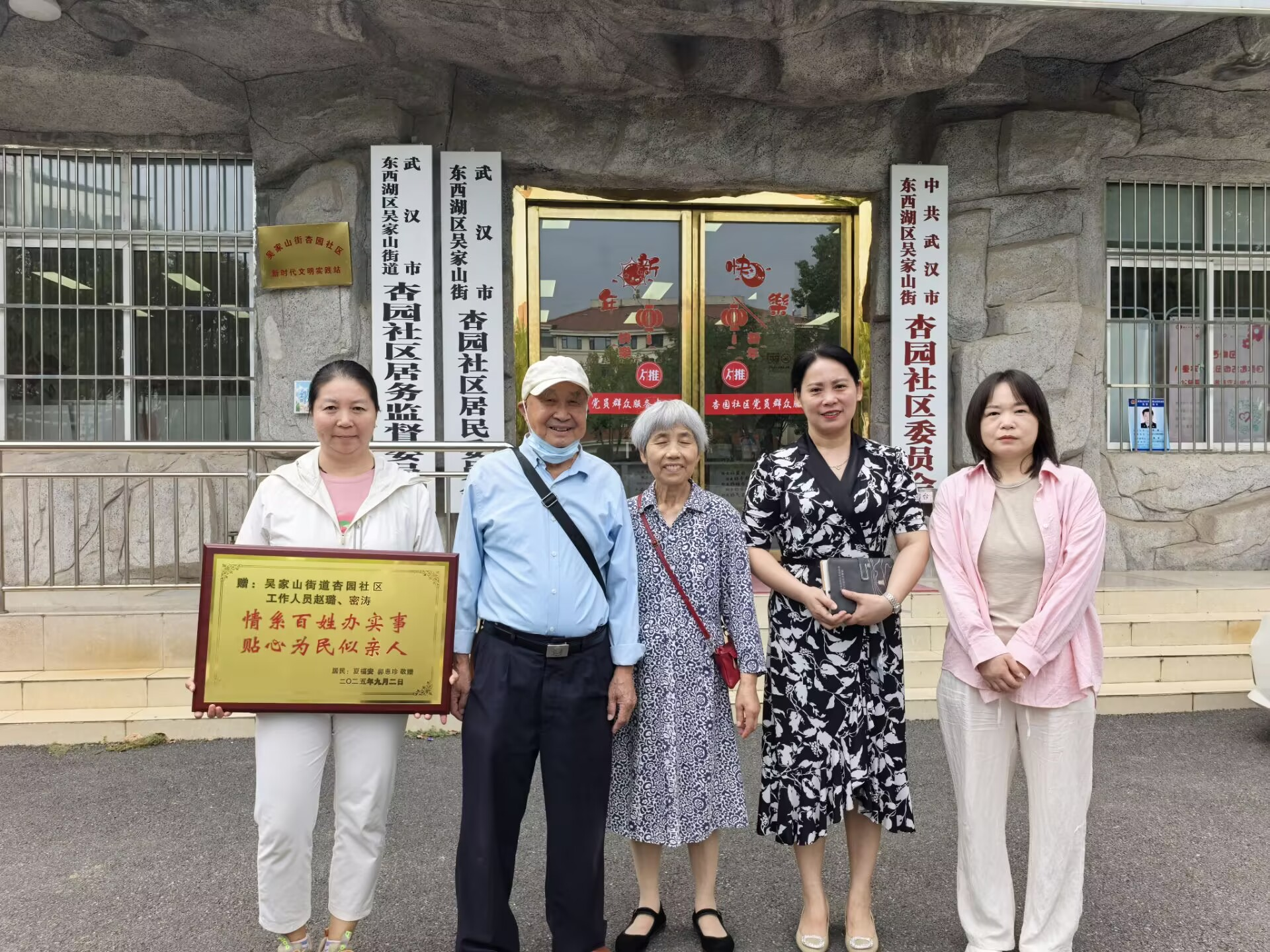 “没有孩子在身边,社区就是我们最亲的依靠。” 提及杏园社区的帮扶,失独老人夏爹爹的眼眶里满是暖意。2025年9月8日失独老人夏爹爹为杏园社区赠送“情系百姓办实事 贴心为民似亲人”的感谢牌,一声声感谢和感谢牌饱含了对社区工作的高度认可。