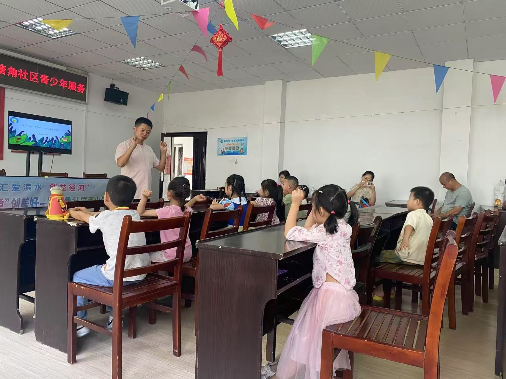 8月31日上午,官塘角社区三楼热闹非凡,官塘角社区青少年服务活动开启了。本次活动以“友谊 分享 合作”为主题,通过故事分享、才艺展示、童书共读、互动游戏和亲子手工等形式,为社区15组5-10岁亲子家庭带来了一场充满欢乐与启迪的成长体验。