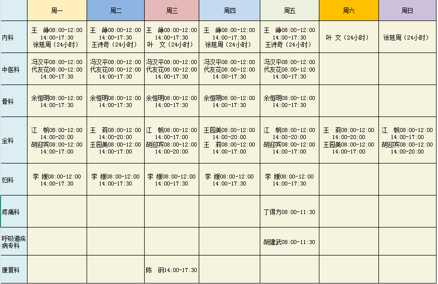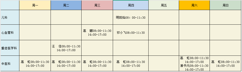 专家坐诊丨9月8日-9月14日 专家坐诊安排