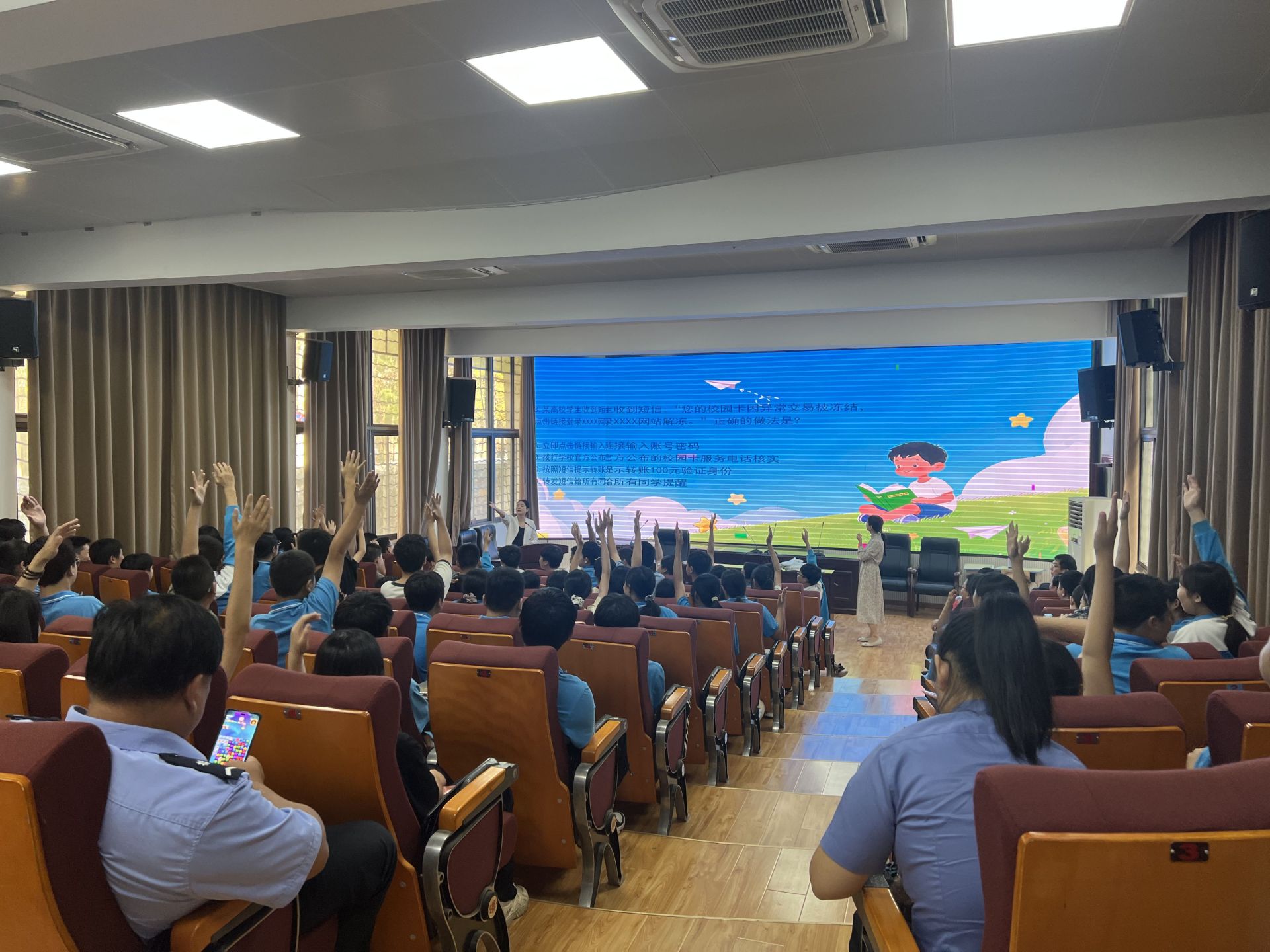 在东方红中学的活动现场,学生们专注投入。各联合单位的业务骨干围绕青少年成长过程中的法律风险和安全问题,为同学们带来了一系列内容丰富、形式生动的专题讲座。区人民检察院的检察官以《从"小野猪"到"英雄":一场来自浪浪山的校园霸凌角色蜕变》为题,通过生动的案例和情景故事,分析了校园欺凌的表现形式和危害,教导学生如何应对校园欺凌行为。市司法局第一强制隔离戒毒所的工作人员开展了《健康人生,绿色无毒》禁毒教育,通过真实案例讲解毒品的危害,帮助学生树立远离毒品的意识。交通银行的宣讲员带来了《个人反诈防护指南》,针对青少年群体常见的游戏账号交易诈骗、冒充熟人诈骗等手法,传授实用的防诈骗技巧。活动最后,区司法局组织了《法律知识有奖竞答》,学生们积极参与,在互动中巩固了法律知识,现场气氛活跃。