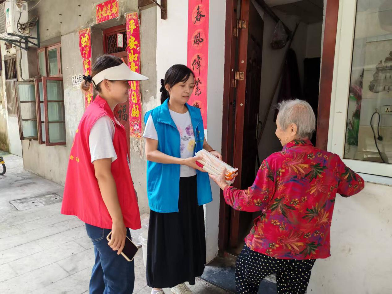 考虑到部分老人行动不便,无法到现场领取面条,社区服务中心工作人员和志愿者还前往部分高龄独居老人家中,将面条送到他们手中。并热情的询问他们的身体状况和生活需求,为他们带去精神上的慰藉。在与老人们的互动中,志愿者们耐心倾听,现场氛围温馨而融洽。