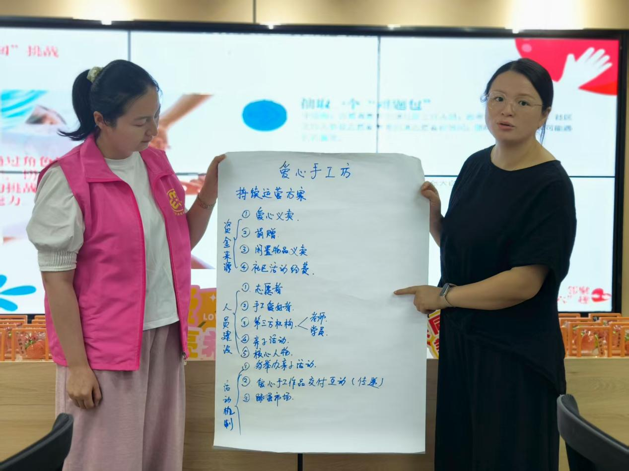 随后,参与者被随机分为三个小组,每个小组均由社区居民和社区工作者共同组成。各小组分别挑战一项社区服务设计任务:第一小组策划零成本运营社区亲子俱乐部;第二小组设计爱心手工坊的自运营及持续发展方案;第三小组则为独居老人策划一场中秋节特别活动。尽管是初次合作,但每个小组都展现出极高的热情与创造力,分别从人力资源、资金筹措、运营机制等角度提出了切实可行的方案,体现了居民与社区工作者协同合作的巨大潜力。