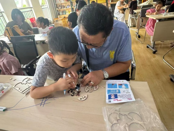 最后,活动来到了充满趣味与温情的亲子手工DIY环节——制作“不倒熊猫”。老师提前精心准备了各种制作材料,有毛茸茸的黑白绒布、灵动的小眼睛贴片、柔软的填充棉,还有色彩斑斓的丝线等。亲子家庭围坐在一起,现场的气氛瞬间变得热烈而温馨。家长们纷纷卷起袖子,和孩子一起开启这场创意之旅。有的孩子突发奇想,想要给熊猫加上一对彩色的翅膀,家长虽然觉得有些新奇,但还是全力支持,和孩子一起讨论翅膀的形状和颜色搭配;还有的孩子不小心把熊猫的眼睛贴歪了,急得小脸通红,家长赶紧安慰并一起重新调整,最终让熊猫的眼睛变得炯炯有神。