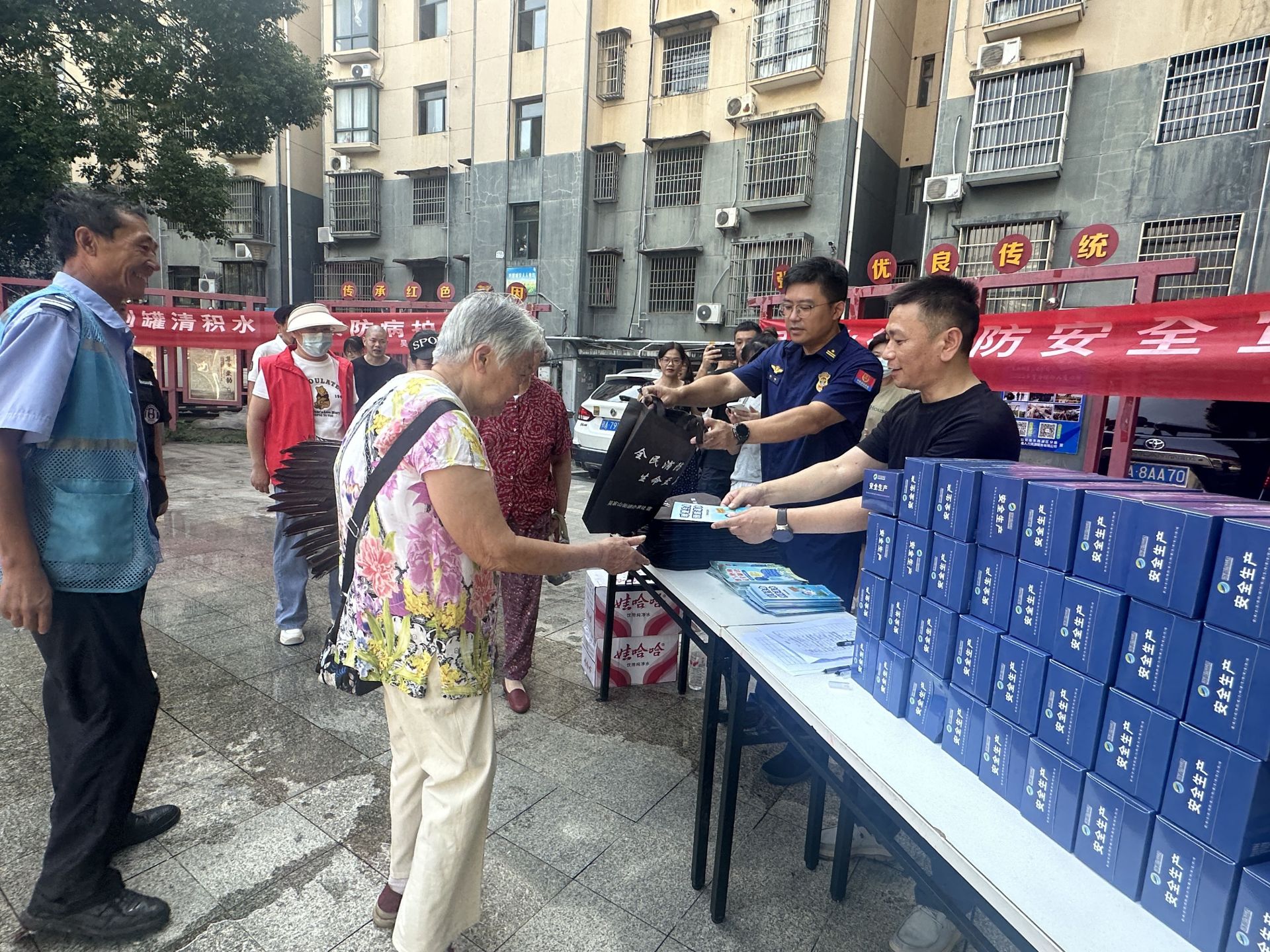 演练结束后,东西湖区消防救援大队管段陈涛、吴家山街应急办科长吴涛为参会人员发放了消防宣传品,并再次提醒大家要时刻重视消防安全,将消防知识牢记心中。
