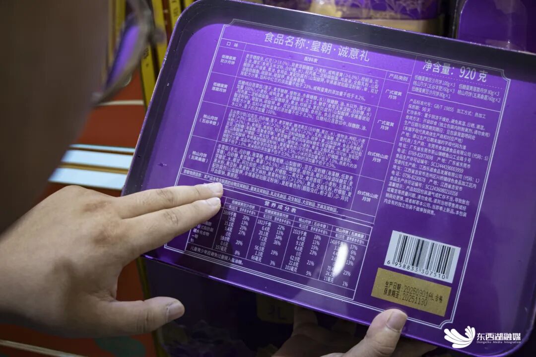 区市场监管局执法人员夏芳和同事对货架上的每一款月饼都进行了仔细检查。“从现场检查情况看,卖场内所有月饼在包装、标识标签、价格公示等方面均符合规定。”她表示,月饼“体检”顺利通过的背后,是门店对食品安全“零容忍”的长期坚持。
