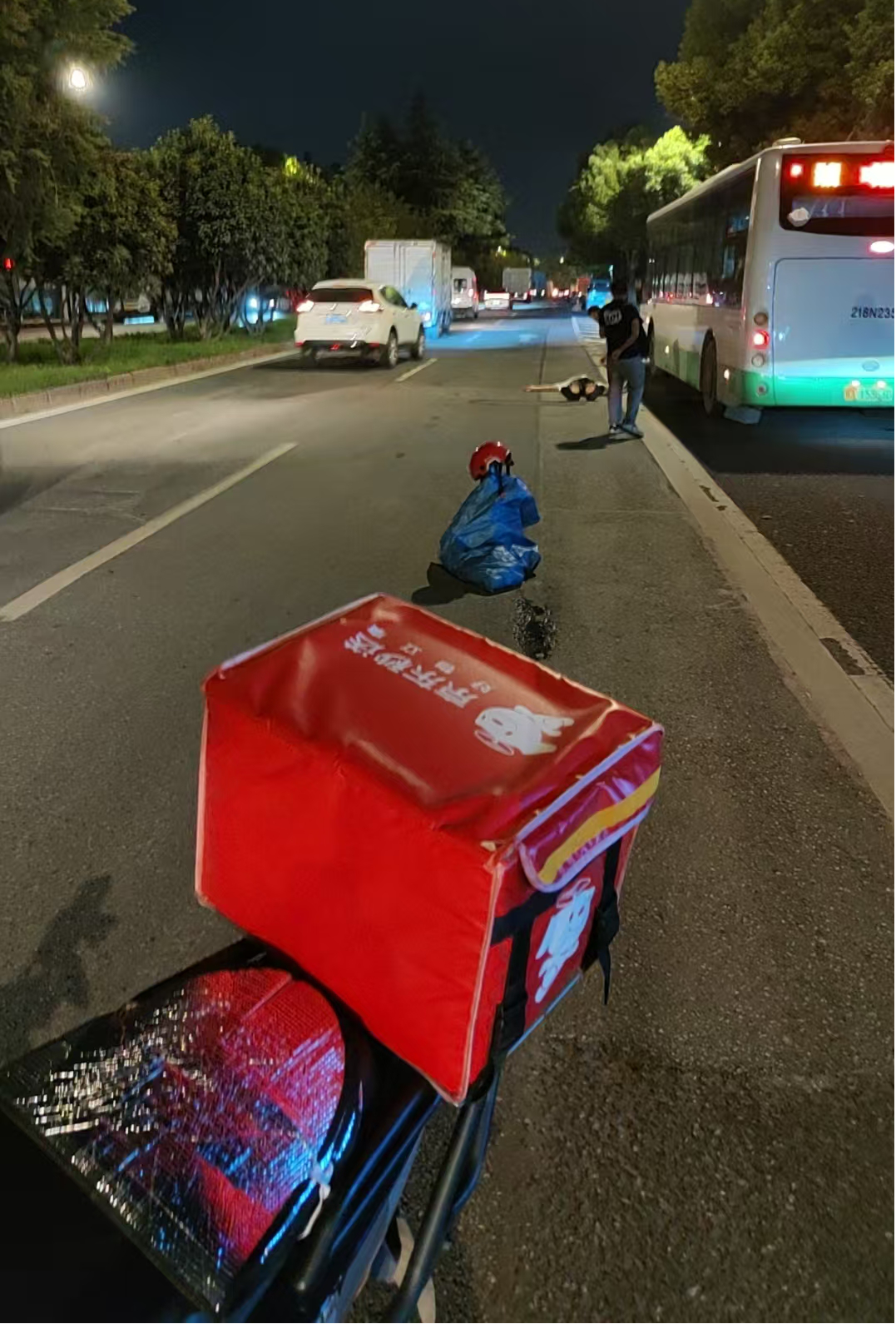 9月16日晚七点,正值下班高峰,革新大道车流如织。38岁的京东骑手张立正赶往送餐点,锐利的目光习惯性地扫过路面——这是他在部队五年磨炼出的本能。突然,他的车速慢了下来:前方主干道正中央,竟躺着一个人!