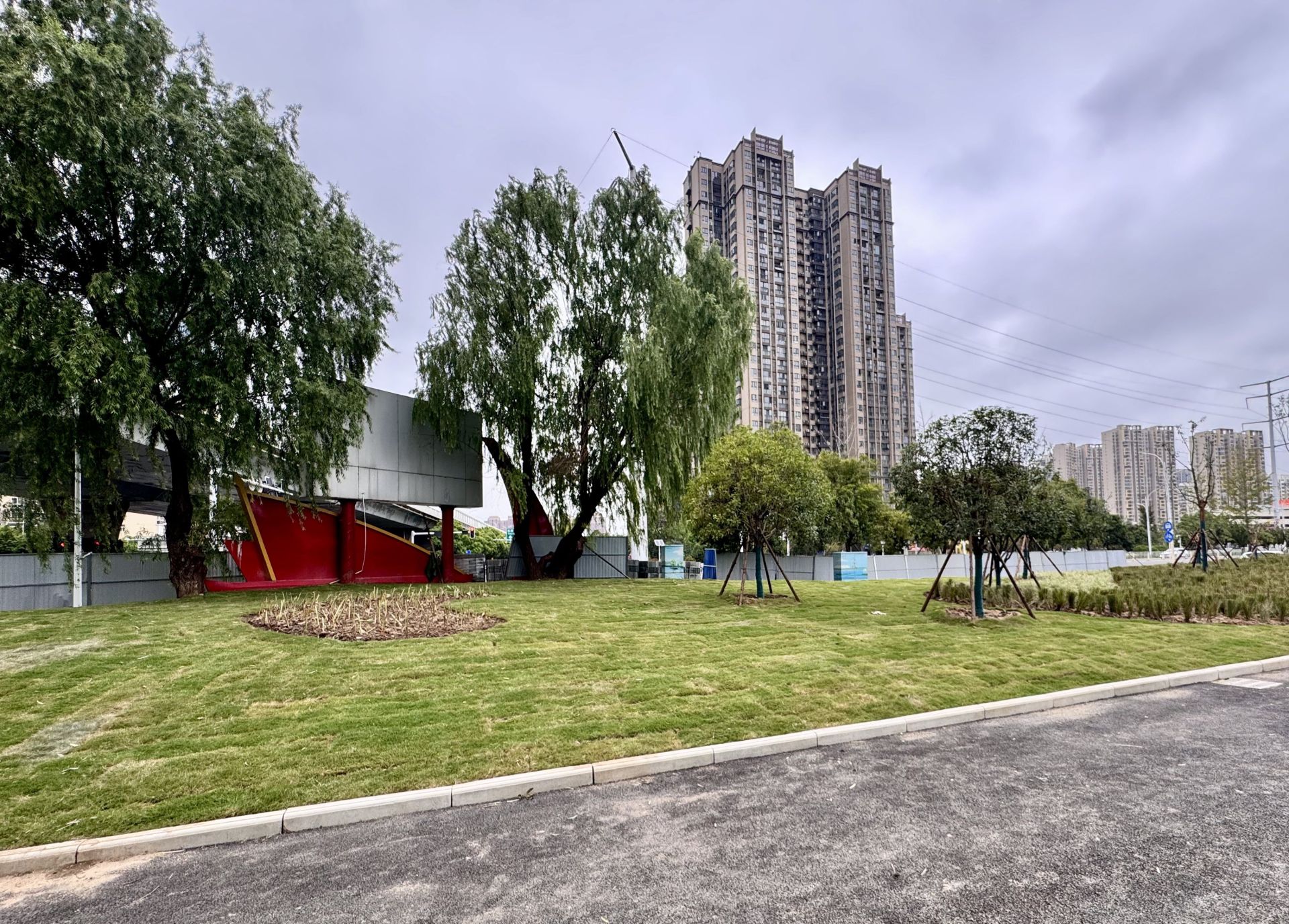 最让人惊喜的是绿化“大变样”。园林绿化公司的师傅们精挑细选,在这片2665平方米的空地上种起了香樟、丛生朴树等乔木,搭配鸢尾、紫薇等花草,四周再铺上清新草坪,层次丰富、色彩灵动。如今,昔日闲置荒芜的角落,已变身为居民交口称赞的“口袋绿地”!