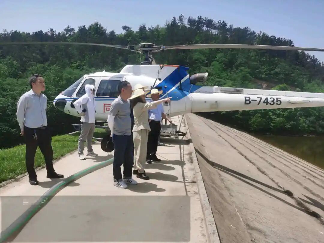 保绿丰线虫防治直升机作业。(通讯员供图)