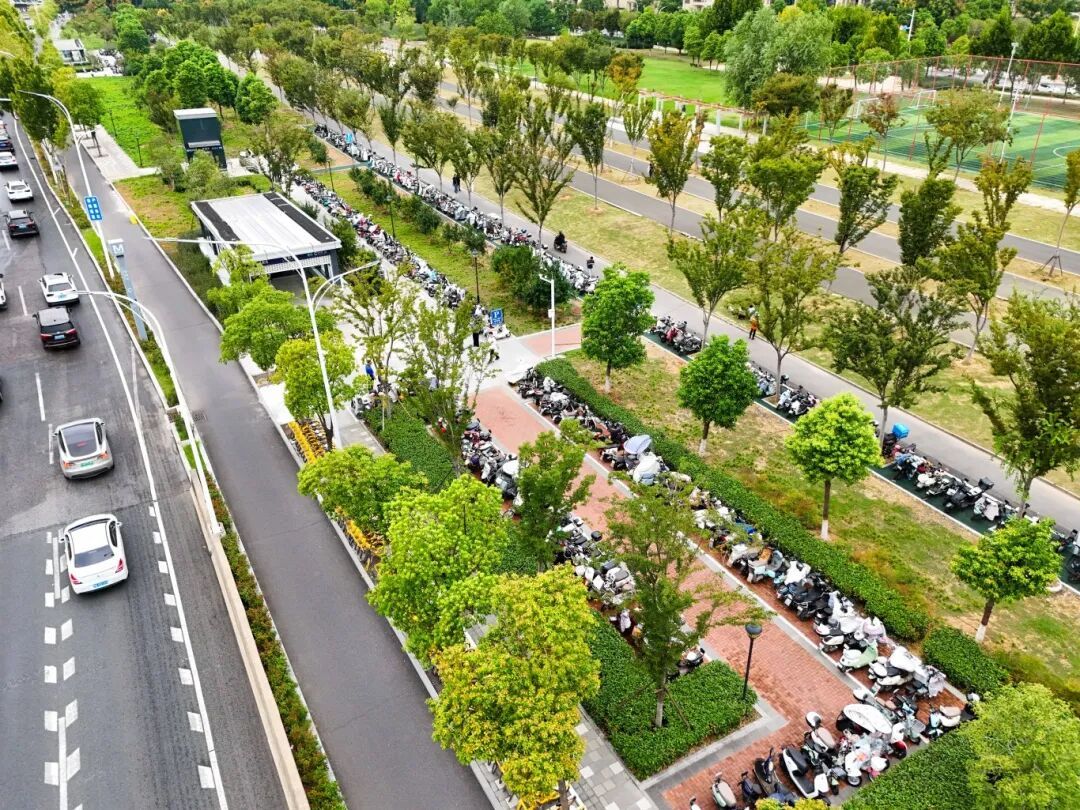 在二雅路地铁口C口一侧,一片植被稀疏的闲置绿地被重新规划,腾出300平方米空间,新增500余个电动车位,有效释放了地铁口安全区域。