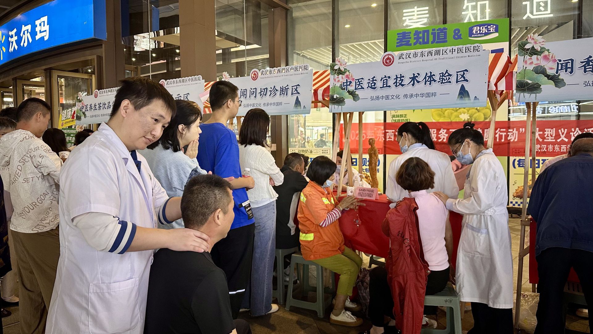 9月23日傍晚,东西湖区海林广场人头攒动,区中医医院志愿服务队在此开展2025年“服务百姓健康行动”大型义诊活动,此次活动以“中医药文化夜市”形式再度走进社区。继9月初首场活动广受好评之后,医院对六大特色展区进行了全面优化,为居民带来更优质的中医药服务体验。