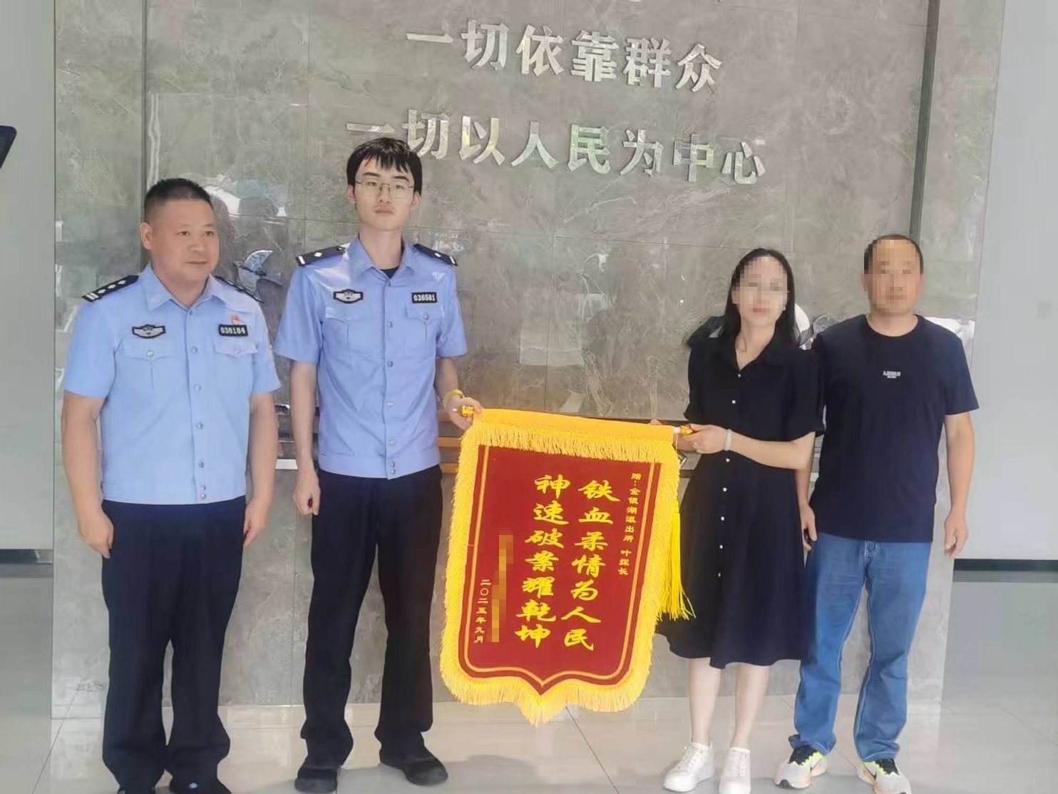 “破案神速,柔情为民。”9月22日,报警企业代表专程赶到所内,将一面锦旗亲手送给办案民警,并为民警火速破案帮助企业追回损失连连点赞。