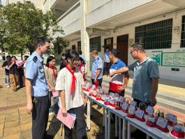 为杜绝校园内危险物品带来的安全风险,新镇社区联合警务室在活动现场同步开展“收刀行动”专项宣传。民警通过展示管制刀具实物,详细讲解《中华人民共和国治安管理处罚法》中关于携带、持有管制刀具的相关规定,以及管制刀具在校园环境中可能引发的恶性事件。同时,现场设置“刀具回收箱”,鼓励学生主动上缴私藏的管制刀具、仿真枪等危险物品,引导学生树立“安全第一”的意识,自觉遵守校园安全规定,共同维护校园安全秩序。