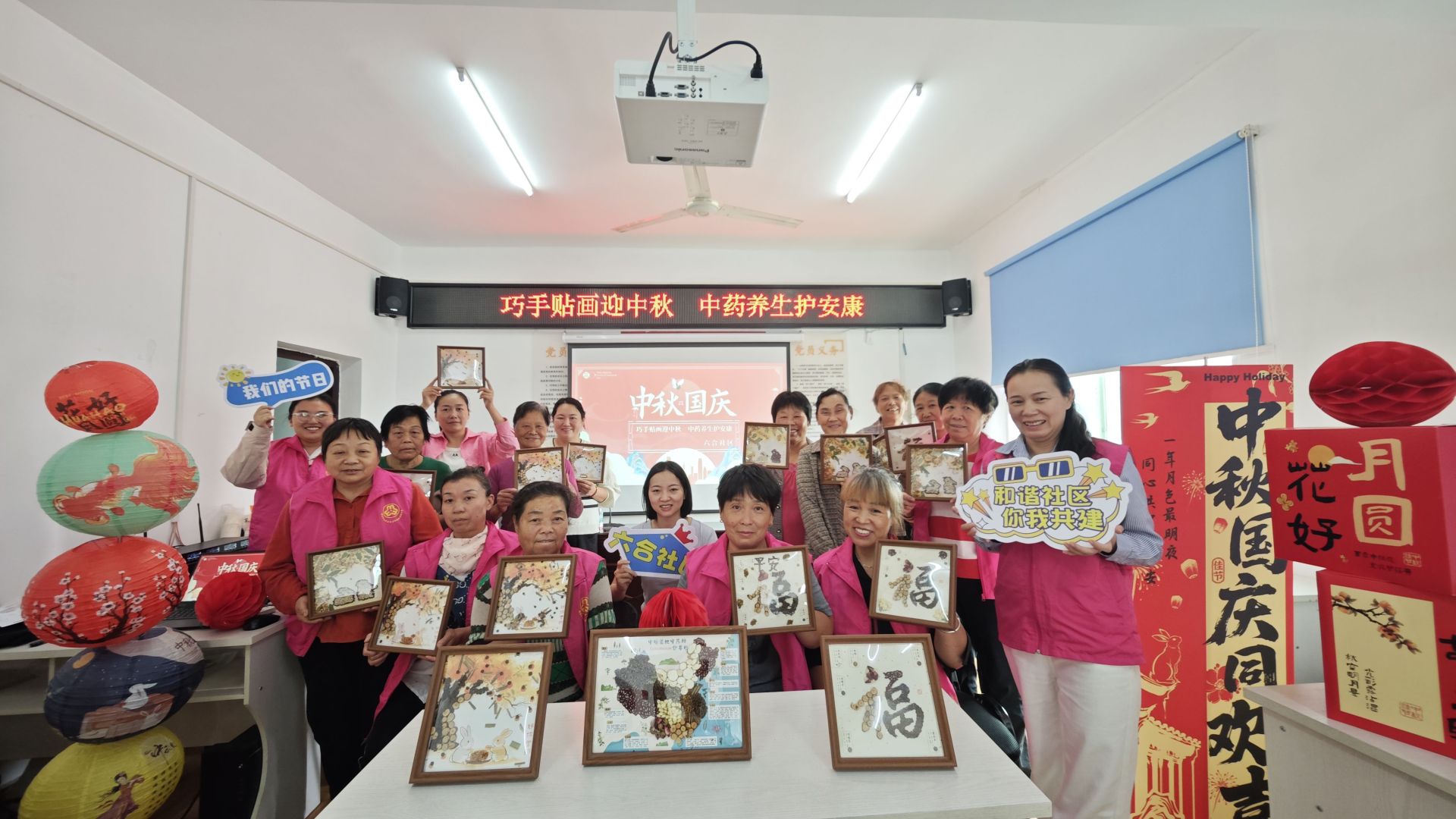六合社区:巧手贴画迎中秋 中药养生护安康