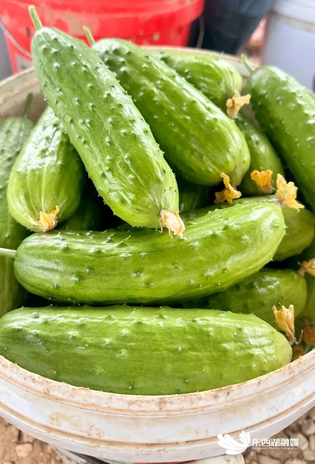 近日清晨六点,西湖大农仓蔬菜基地已是忙碌一片。翠绿的叶片上露珠滚动,黄瓜与瓠子挂满藤蔓,长势喜人。