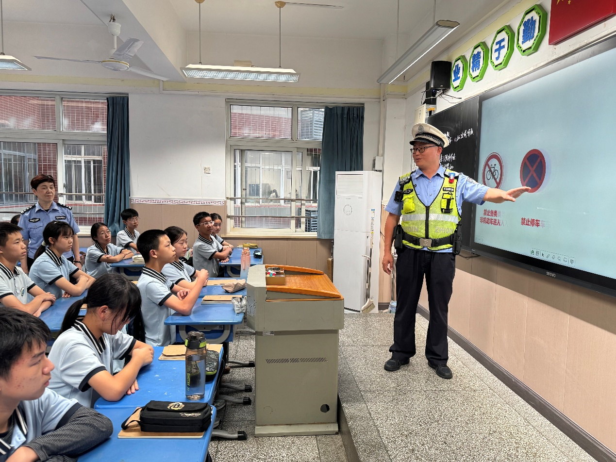与幼儿园的趣味体验不同,针对初中生的安全宣讲更注重知识的系统性与实用性。综治队员结合校园周边交通环境,通过播放交通安全警示片、展示事故案例图片等方式,向同学们详细讲解了过马路、骑自行车、乘坐交通工具时的安全注意事项,特别强调了不闯红灯、不逆行、不随意横穿马路等重要规则,提醒大家时刻遵守交通法规,保护自身生命安全。