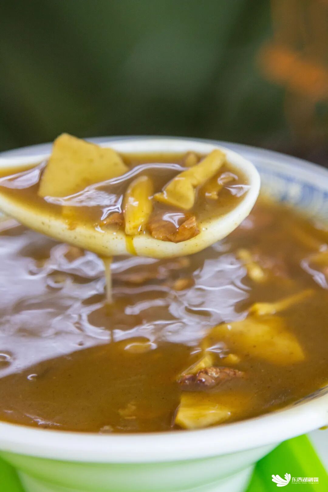早上8点 ,天气微凉,想吃点热乎的,就冲“王忠圈胡辣汤”,瓷碗里的汤浓稠发亮,大片牛肉藏在木耳、豆干、粉条、花生之间,是肉眼可见的实在。胡椒味不算浓烈,但牛骨吊出的汤底透着鲜,再配几个牛肉粉条水煎包,外皮酥得掉渣,性价比超高。一口汤一口包子,浑身都暖起来。