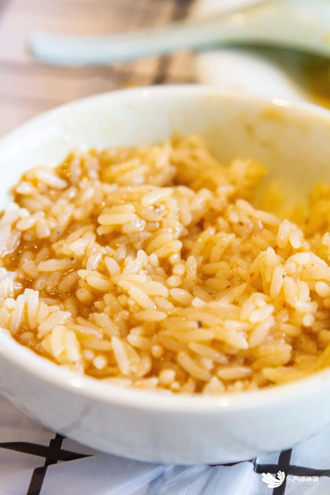 最勾人的,是浇在米饭上的那勺鱼头卤。店里的五常米,六块钱一斤的成本价,蒸得颗颗分明,带着米本身的清甜。滚烫的鱼头汤汁浇下去,米粒瞬间吸饱鲜味,筷子一拌,酱汁裹着米粒滑进嘴里,连碗底都要刮得干干净净。“好多客人专门冲这碗泡饭来,还会打包两份米饭,说回家拌着吃也香。” 余威笑着说道。