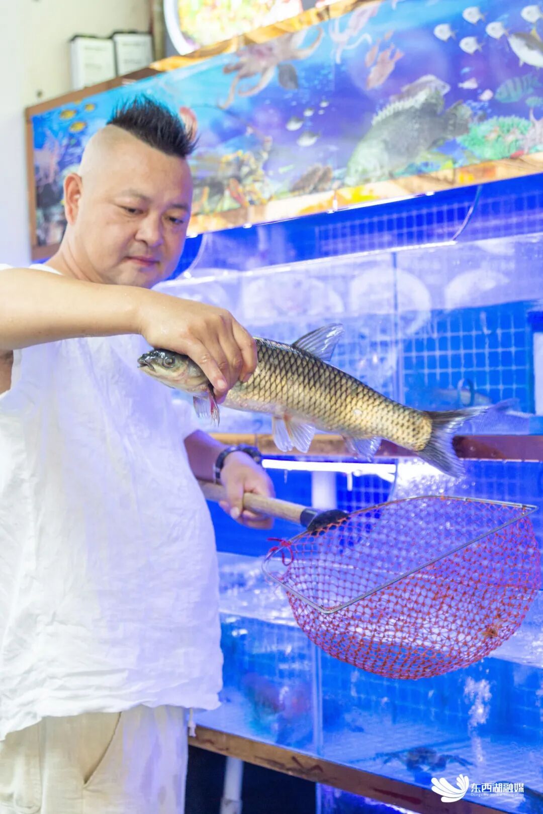 “我们的鱼,只认水库自养的胖头鱼。”店长余威的手指点向鱼缸里最欢实的那条鱼,语气里满是笃定。话音未落,后厨师傅已伸手捞起一尾鱼,铁刮子划过鱼身,鱼鳞簌簌落在瓷盆里。“客人点单才能捞鱼,活鱼现杀,一鱼一吃绝不隔夜。”刀起刀落间,鱼肉泛着粉白的光泽。