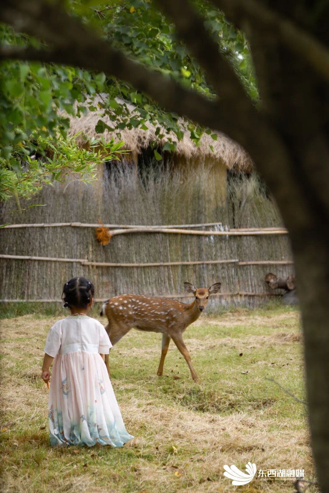 在鹿儿在·欢乐营地,房车露营区域里,烤架上的肉串滋滋作响,散发着诱人的香气;大草坪上,小朋友与小鹿亲密互动,投喂蔬菜饲料包;水杉林中柴窑面包专区,亲子烘焙互动课堂正在热闹上演。